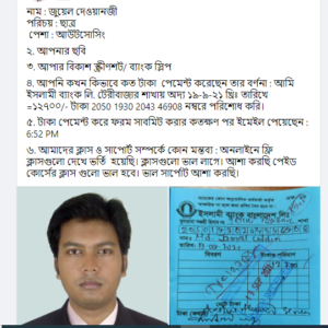 কিন্তু পরবর্তী যে কোন সময় বাকী ৬৯০০ টাকা দেয়ার পর ক্লাস ও সাপোর্টে জয়েন হতে পারবেন ।