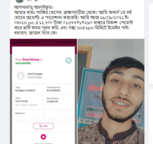 (সতর্কতা: ফেসবুকে ইনবক্স করে কাউকে কখনো টাকা দিবেন না)